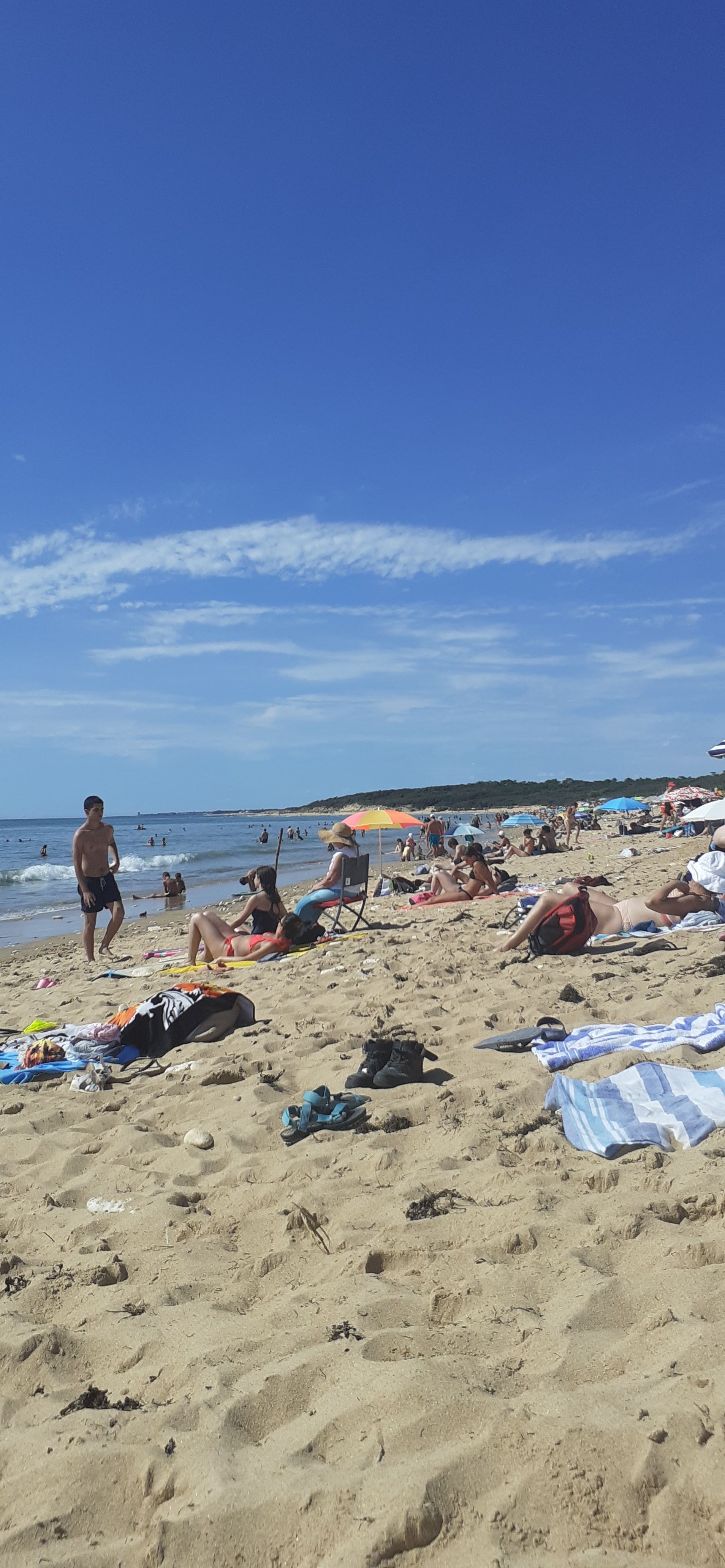 Longue plage avec de grosses vagues. Une petite zone est surveillée par des sauveteurs, ce qui est très agréable si vous avez des enfants avec vous. Les gilets de sauvetage sont fortement recommandés pour les enfants car il y a de forts courants. Ne serait-ce que nager à marée haute. Un parking est disponible, mais il faut soit marcher longtemps, soit arriver tôt, soit avoir de la chance.